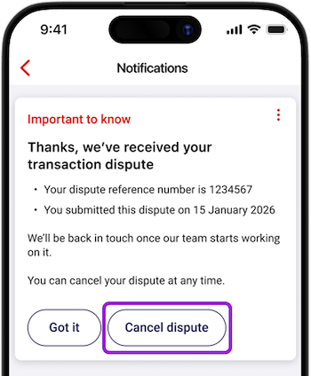 We’ll send a reference number within 10 days of you raising the dispute. Keep this number handy if we contact you.