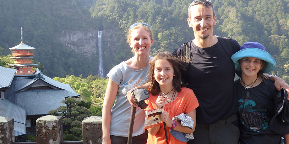 Dominick Stephens with his family at the end of a 100km walk in Japan