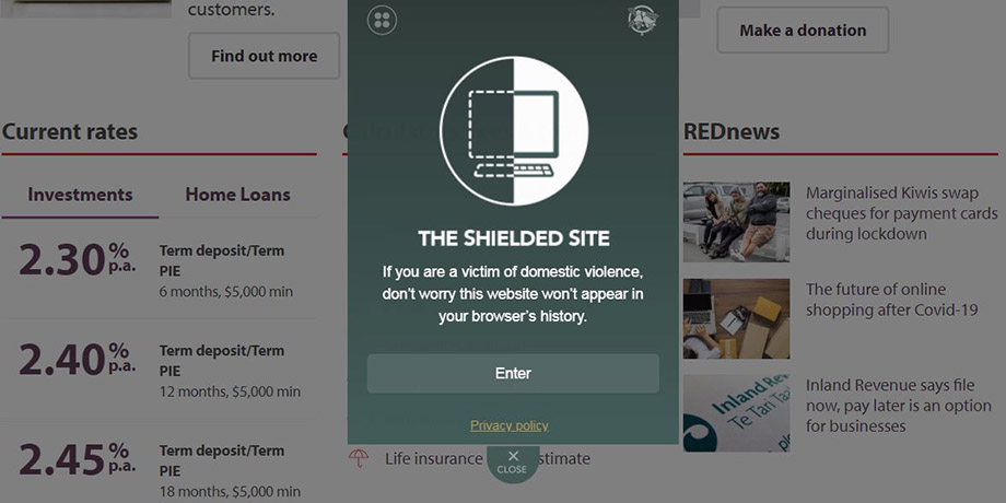 This problematic situation, which has intensified during Covid-19 lockdown, was the inspiration for an untraceable ‘Shielded Site’ that has been developed with the help of Women’s Refuge and is available on the Westpac website.